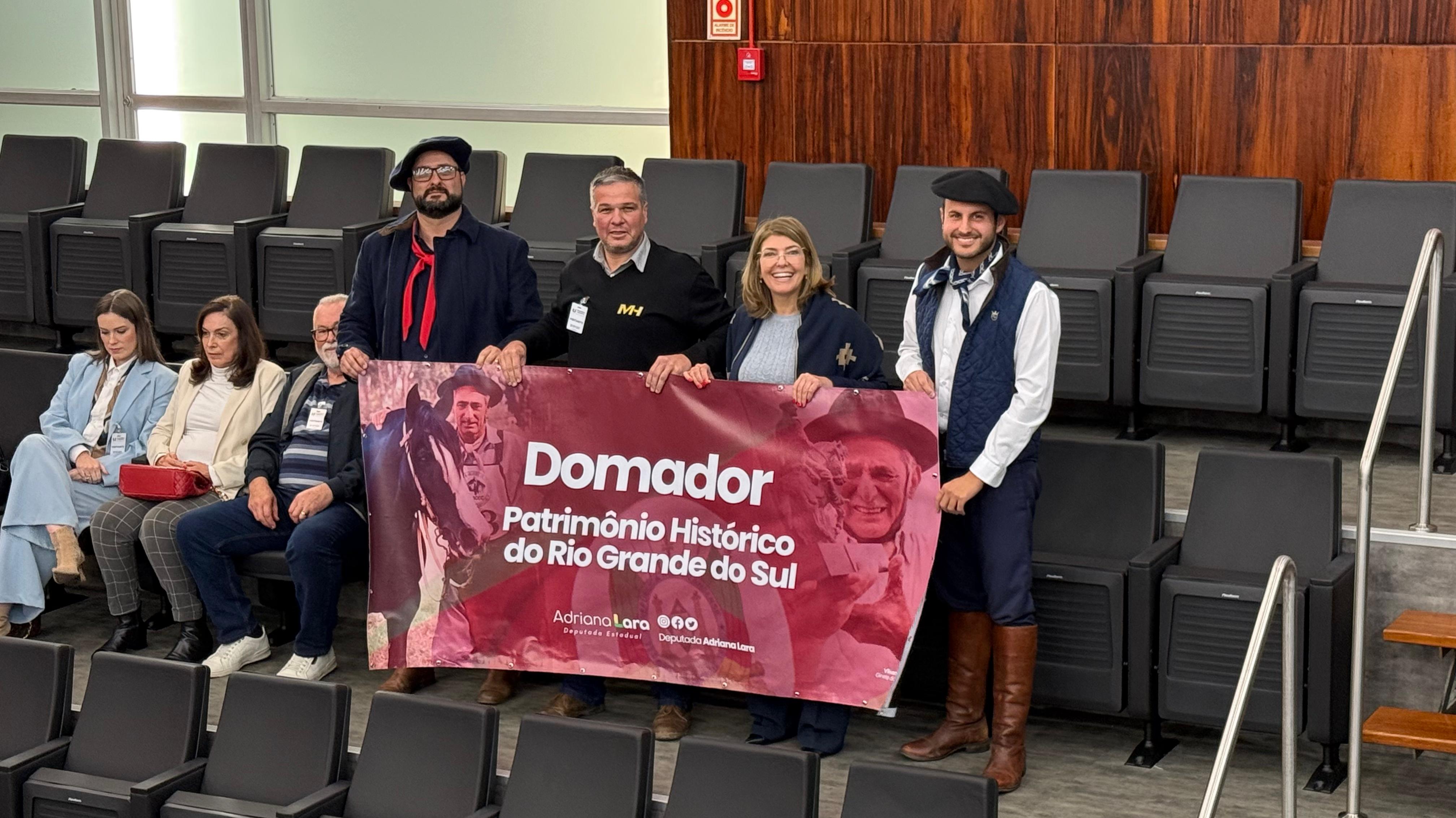 A Assembleia Legislativa do Rio Grande do Sul aprovou de forma unânime, na tarde desta terça-feira, 12 de agosto, o Projeto de Lei (PL) 431/2023 que declara o ofício de Domador como Patrimônio Histórico e Cultural. A proposta é da deputada estadual Adriana Lara (PL). Além disso, o projeto também presta homenagem a Vilson Souza, denominando a Lei Vilson Souza, símbolo da doma gaúcha, primeiro ginete campeão da história do Freio de Ouro, com cinco títulos de Ouro, quatro de Prata e dois de Bronze. Com a aprovação, o próximo passo é a sanção do governador Eduardo Leite.