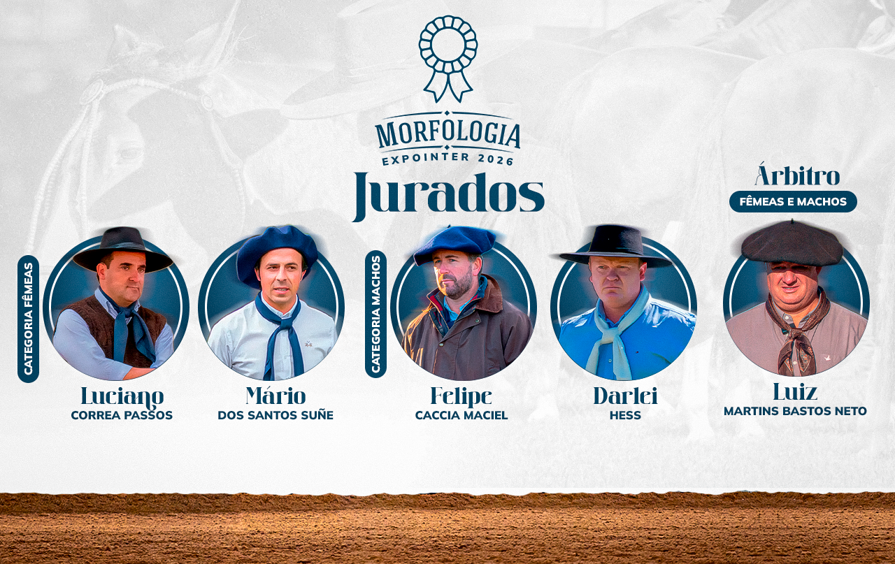 Nomes importantes e conhecidos nas pistas, entretanto que estarão pela primeira vez sob responsabilidade de julgar uma Final Seletiva de tamanha proporção e responsabilidade. “Optamos por jurados com experiência em diversas provas da raça, quais temos muita confiança, mas que não são figuras frequentes nos julgamentos das finais seletivas. Acreditamos que todos possuem um vasto conhecimento e estão à altura do compromisso”, destaca o Vice Presidente Técnico, Leonardo Alberthon Ardenghy. O único que já esteve julgando uma Final da Morfologia foi o jurado Felipe Caccia Maciel, em 2020. Já Luciano Correa Passos, recentemente, foi árbitro na Final Expointer 2025.