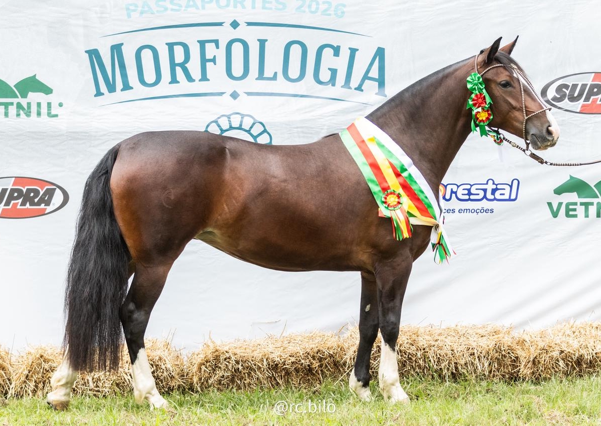 O Ciclo de Outono de 2026 das Exposições Passaporte começa com alto nível. Os aprumos superiores, a feminilidade e a boa garupa garantiram o título de Melhor Exemplar da Raça para a potranca menor Aurora da Cabanha 2 R (Box 54) na 1ª Exposição Passaporte de Outono do ciclo 2026 do Cavalo Crioulo, na Lapa (PR). Proveniente da Cabanha Santa Larissa, de Tijucas do Sul (PR), a fêmea colorada já havia conquistado o título de Melhor Exemplar Incentivo em maio de 2025. Emocionado, o jurado da prova, Roberto Crespo, destacou a qualidade da disputa. “É emocionante julgar uma exposição tão importante para a raça Crioula. A grande campeã entrou em pista com vontade de ganhar a prova, caminhando muito bem. Os detalhes que fizeram com que ela superasse a segunda colocada foram os bons aprumos e a linha superior”, destacou o avaliador.